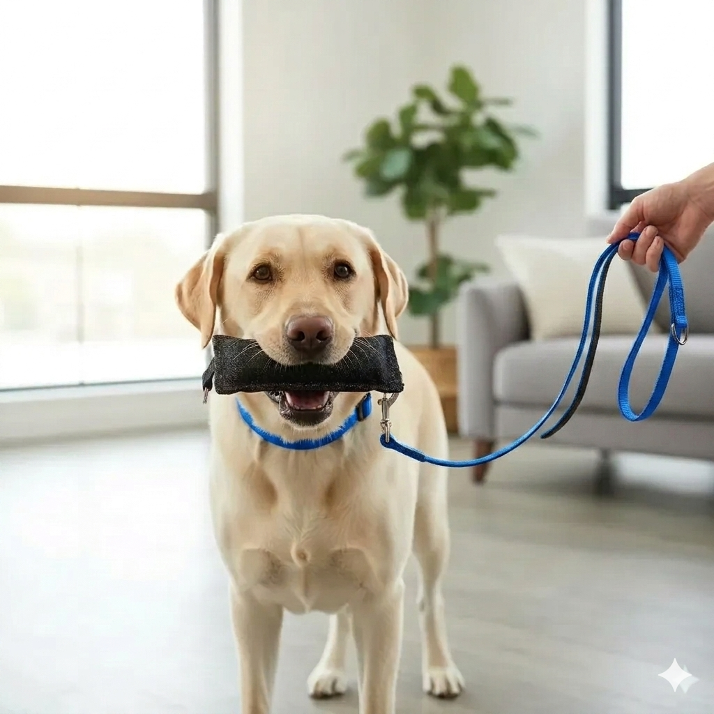 O cão aprende rapidamente que, ao invés de destruir a guia, ele tem um item robusto e confortável para carregar, o que gera uma sensação de calma e propósito durante a atividade física. Ideal Para: